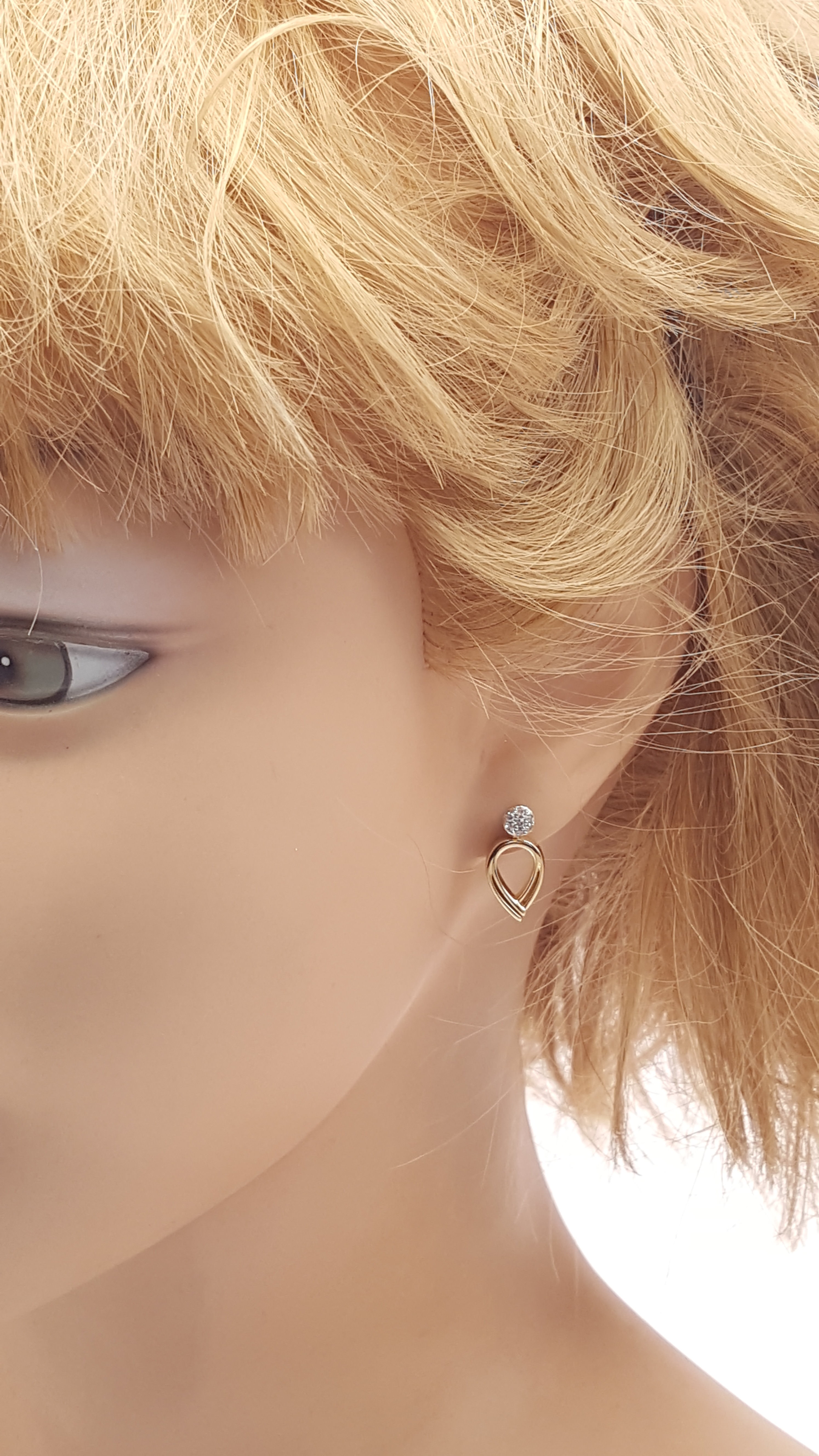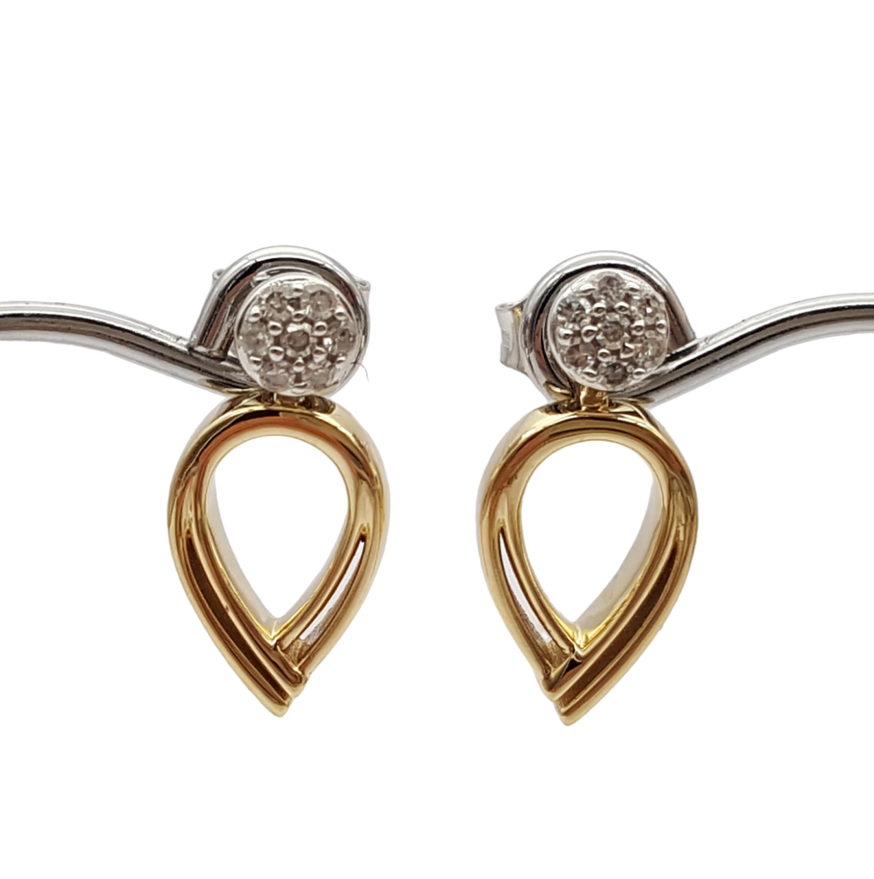 Ohrstecker aus 585er Gelb und Weissgold, die Oberfläche fein poliert, mit je 7 echten Diamanten in Weiß als Blickfang.