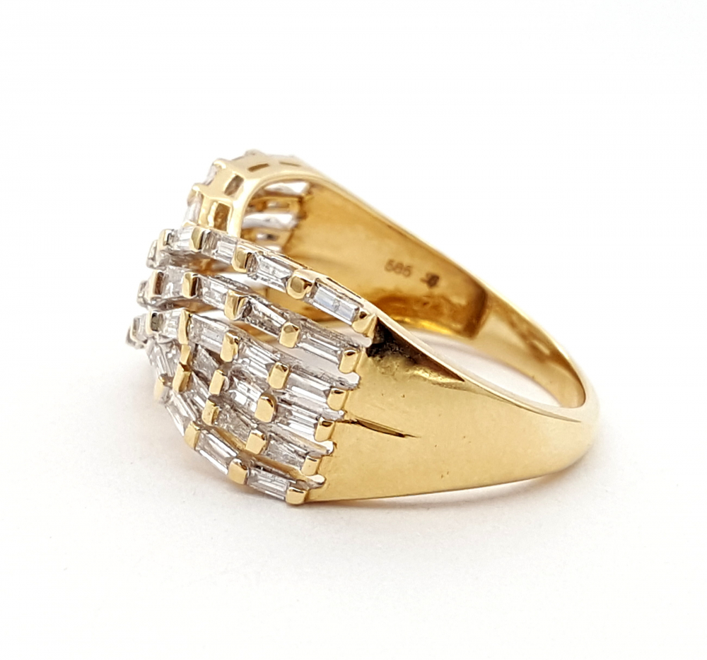Ring 585 Gelbgold 59 weiße Diamanten Baquetteschliff 1,01 ct. 57 - 18,0 mm